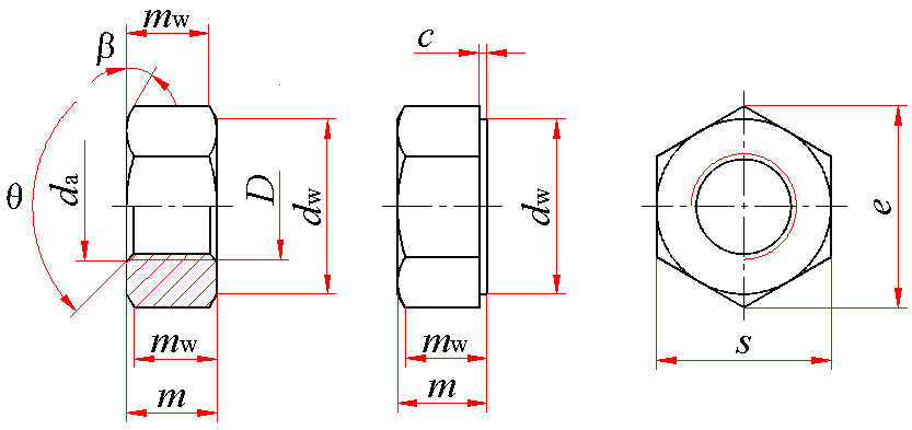 螺纹规格 D×P | c | da | dw min | e min | m | mw min | s | ||||