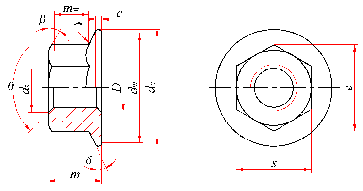 六角法兰面螺母(GB/T 6177.1—2016) mm | ||||||||||||||
