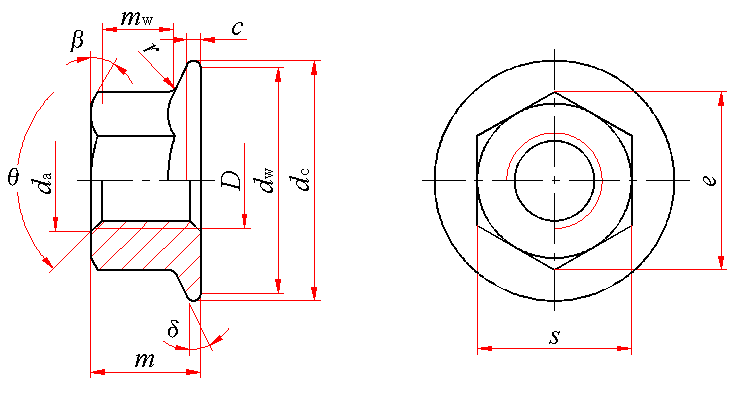 标记示例: 螺纹规格D=M12×1.25、细牙螺纹、性能等级为10级、表面氧化、产品等级为A级的六角法兰面螺母的标记: 螺母 GB/T 6177.2 M12×1.25 | ||||||||||||