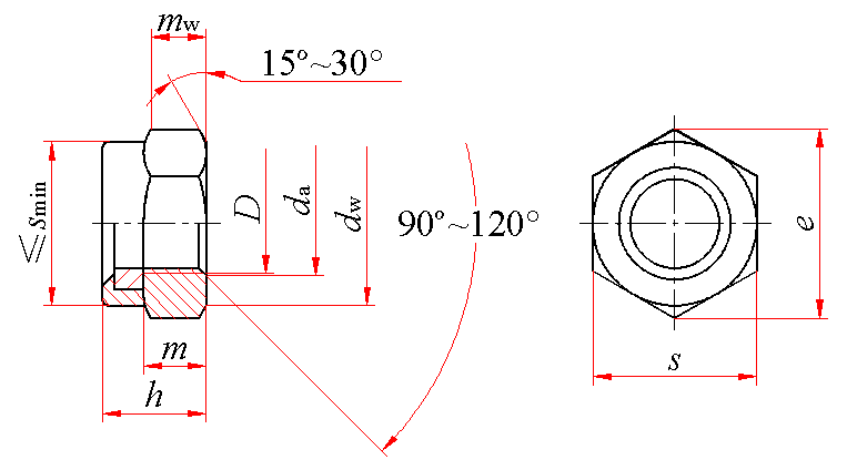 螺纹规格 | da | dw min | e min | h | m min | mw min | s | ||||