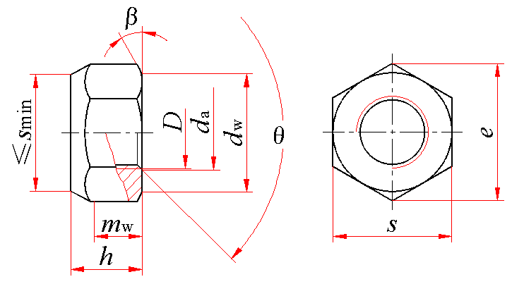 螺纹规格 | da | dw min | e min | h | mw min | s | ||||