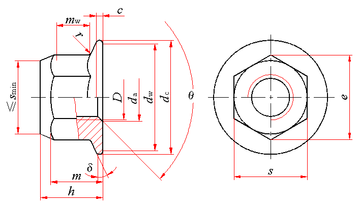 标记示例: 螺纹规格D=M12、性能等级为8级、表面氧化、产品等级为A级的全金属六角法兰面锁紧螺母的标记: 螺母 GB/T 6187.1 M12 | ||||||||||||||