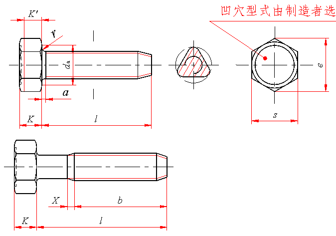 标记示例: 螺纹规格为M5、公称长度l=20mm、性能等级为B级、表面镀锌钝化的六角头自攻锁紧螺钉的标记: 自攻螺钉 GB 6563 M5×20 |