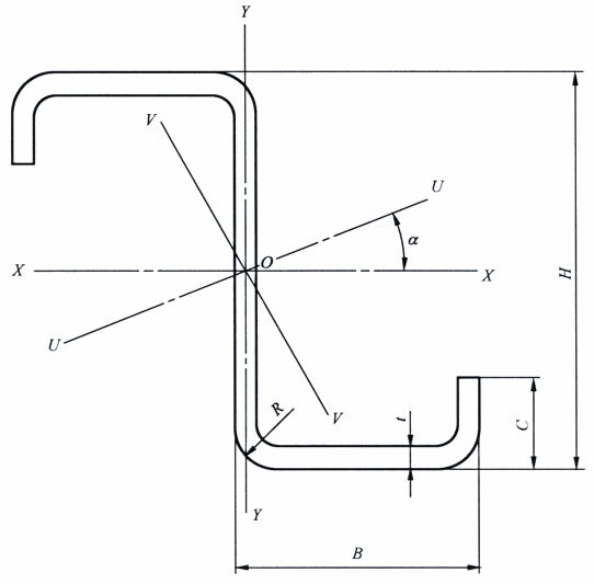 H×B×C×t | H | B | C | t | Ix | Iy | Iu | Iv | rv | Ixy | Wx | Wy | tan α | |||||||||||||||||||||||||