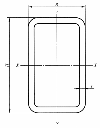 代号:J H—— 长边; B—— 短边; t—— 壁厚