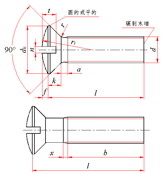 螺纹 规格 d | 螺距 P | a | b | dk | f ≈ | k | n | r max | rf ≈ | t | x max | l的范围 | 全螺纹 长度l | |||||