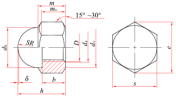 组合式盖形螺母(GB/T 802.1—2008) mm |