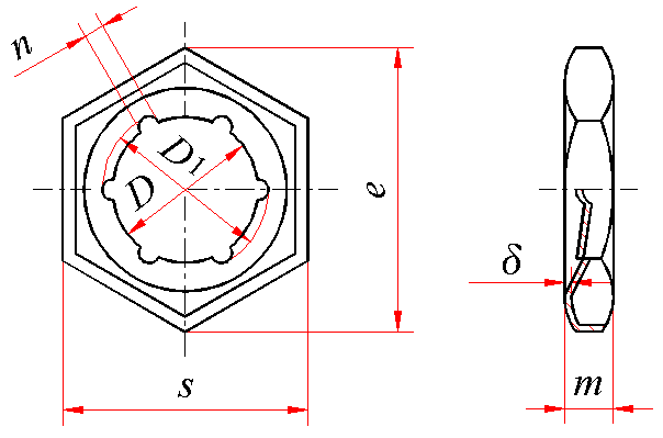 标记示例: 螺纹规格D=M12、材料为65Mn、热处理硬度HRC30~40、表面氧化的扣紧螺母的标记: 螺母 GB 805 M12 |