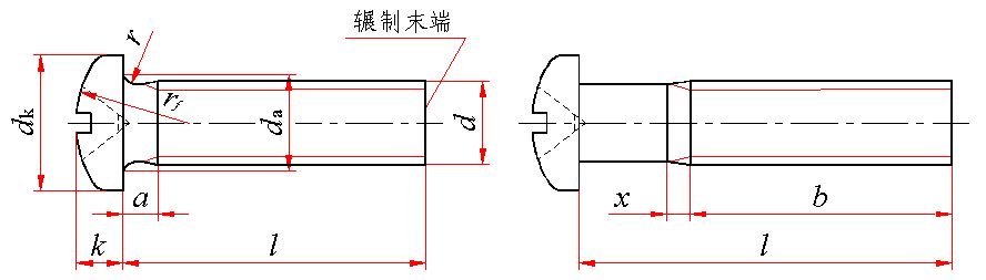 无螺纹部分杆径约等于螺纹中径或允许等于螺纹大径 | ||||||||||||||||||||