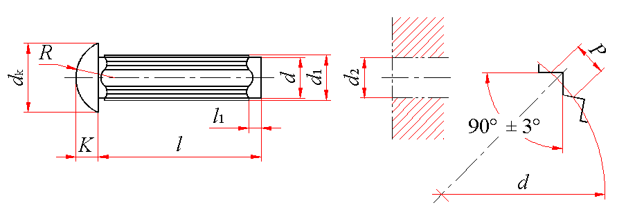 标记示例: 公称直径d=3mm、公称长度l=10mm、材料为BL2、不经表面处理的标牌铆钉的标记: 铆钉 GB/T 827 3×10 |