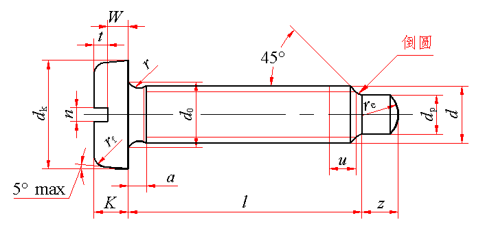 标记示例: 螺纹规格d=M6、公称长度l=6mm、长度z=4mm、性能等级为14H级、不经表面处理的开槽盘头定位螺钉的标记: 螺钉 GB 828 M6×6×4 |