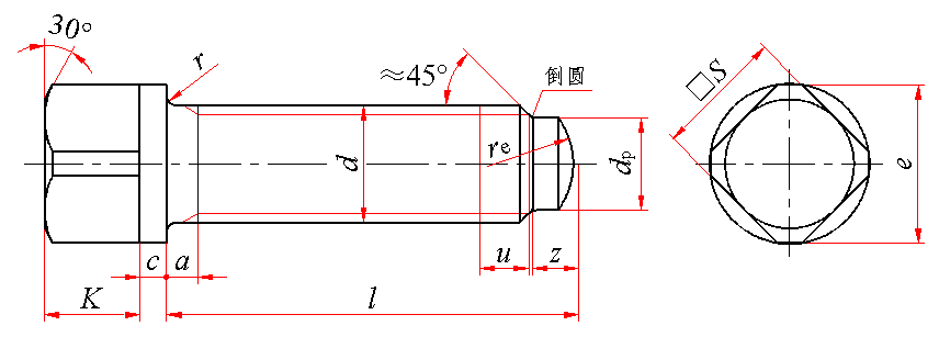 a≤4P;u(不完整螺纹的长度)≤2P;P—螺距 |