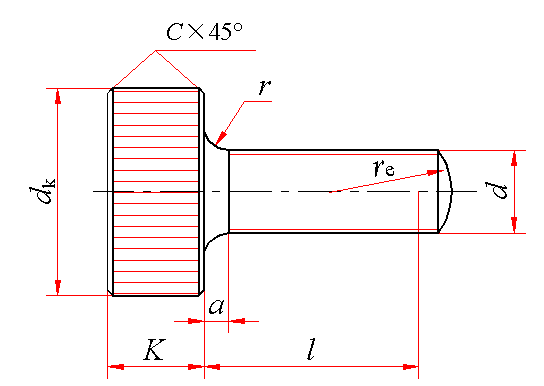 标记示例: 螺纹规格d=M5、公称长度l=20、性能等级为4.8级、不经表面处理的滚花平头螺钉的标记: 螺钉 GB 835 M5×20 |