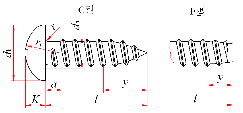 标记示例: 螺纹规格ST3.5、公称长度l=16 mm、H型槽、镀锌钝化的C型十字槽盘头自攻螺钉的标记: 自攻螺钉 GB 845 ST3.5×16 |