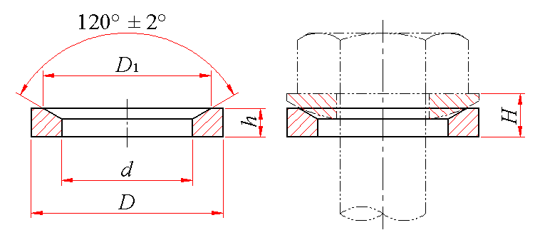 标记示例: 规格16mm、材料为45钢、热处理硬度HRC40~48、表面氧化的锥面垫圈的标记: 垫圈 GB 850 16 |