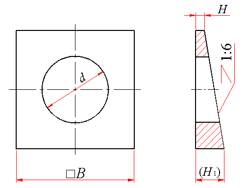标记示例: 规格16mm、材料为Q215、不经表面处理的工字钢用方斜垫圈标记: 垫圈 GB 852 16 |