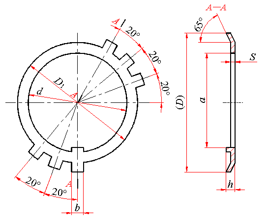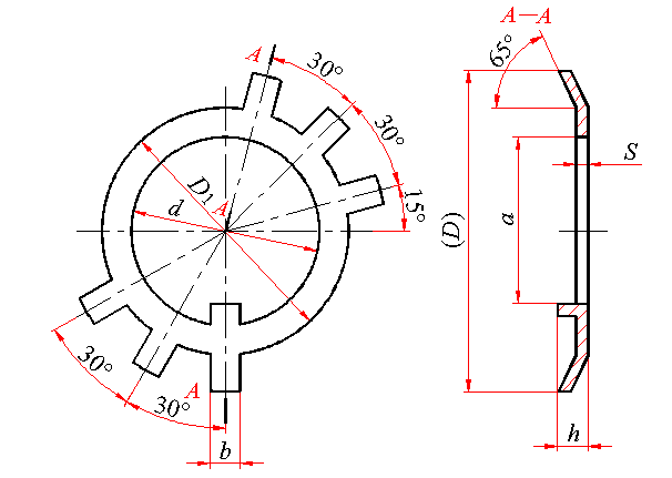 标记示例: 规格16mm、材料为Q215、经退火、表面氧化的圆螺母用止动垫圈的标记: 垫圈 GB 858 16 |