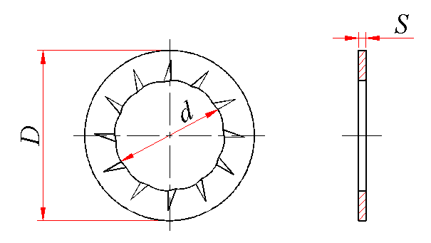 标记示例: 规格6mm、材料为65Mn、表面氧化的内锯齿锁紧垫圈的标记: 垫圈 GB 861.2 6 |