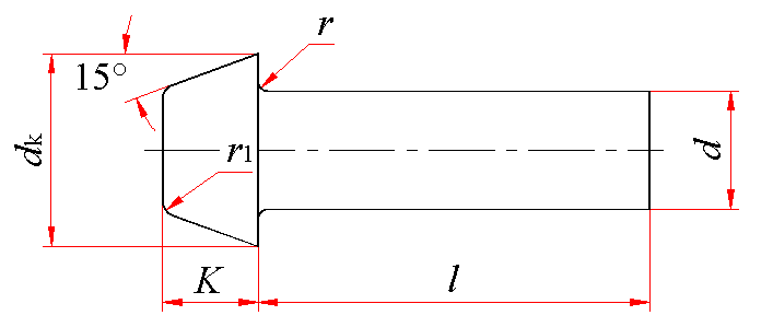 标记示例: 公称直径d=6mm、公称长度l=30mm、材料为BL2、不经表面处理的平锥头铆钉的标记: 铆钉 GB/T 868 6×30 |