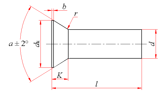 标记示例: 公称直径d=5mm、公称长度l=30mm、材料为BL2、不经表面处理的沉头铆钉的标记: 铆钉 GB/T 869 5×30 |