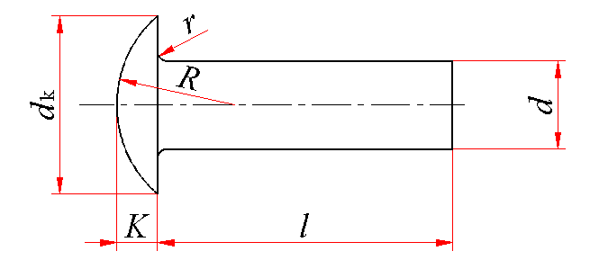 标记示例: 公称直径d=10mm、公称长度l=40mm、材料为BL2、不经表面处理的扁圆头铆钉的标记: 铆钉 GB/T 871 10×40 |