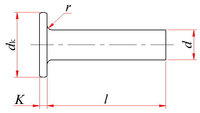 标记示例: 公称直径d=6mm、公称长度l=30mm、材料为BL2、不经表面处理的扁平头铆钉的标记: 铆钉 GB/T 872 6×30 |