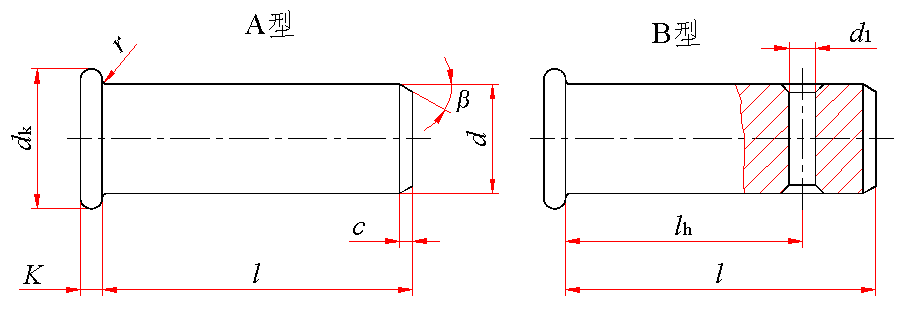 标记示例: 公称直径d=10mm、长度l=50mm、材料为35钢、热处理硬度28~38HRC、表面氧化处理的A型销轴的标记: 销 GB/T 882 A10×50 |
