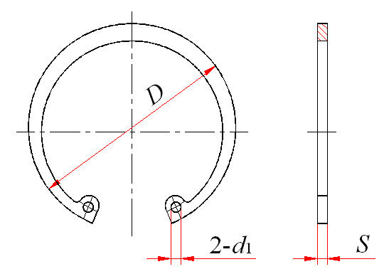 标记示例: 孔径d0=50、材料65Mn、热处理硬度HRC44~51、经表面氧化处理的A型孔用弹性挡圈的标记: 挡圈 GB/T 893.1 50 |