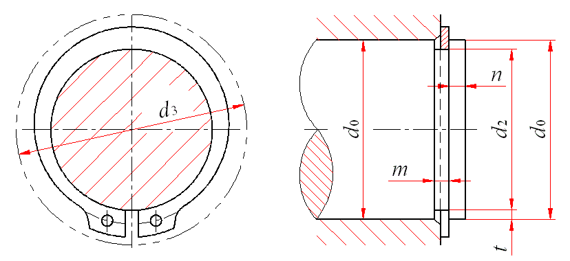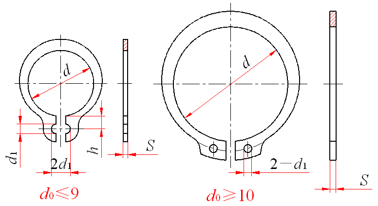 标记示例: 轴径d0=50mm、材料65Mn、热处理HRC44~51、经表面氧化处理的A型轴用弹性挡圈的标记: 挡圈 GB/T 894.1 50 |