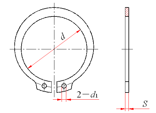 标记示例: 轴径d0=50mm、材料65Mn、热处理HRC44~51、经表面氧化处理的B型轴用弹性挡圈的标记: 挡圈 GB/T 894.2 50 | |||||||||||