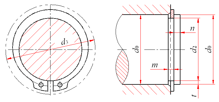 轴径 d0 | 挡 圈 | 沟 槽(推荐) | 孔 d3 ≥ | ||||||||