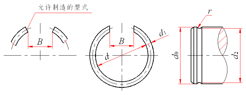 标记示例: 轴径d0=40mm、材料为碳素弹簧钢丝经低温回火及表面氧化处理的轴用钢丝挡圈的标记: 挡圈 GB/T 895.2 40 |