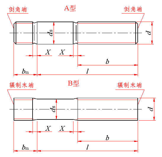 ds约等于螺纹中径(仅适用于B型);末端按GB/T 2规定 |