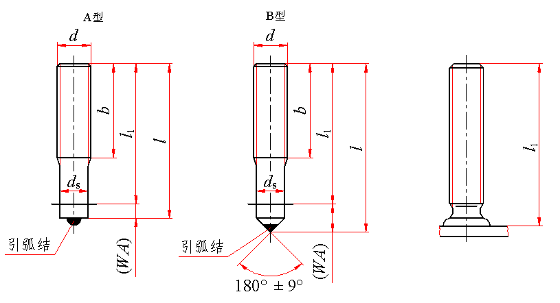 注:WA为焊接螺柱的熔化长度。 |