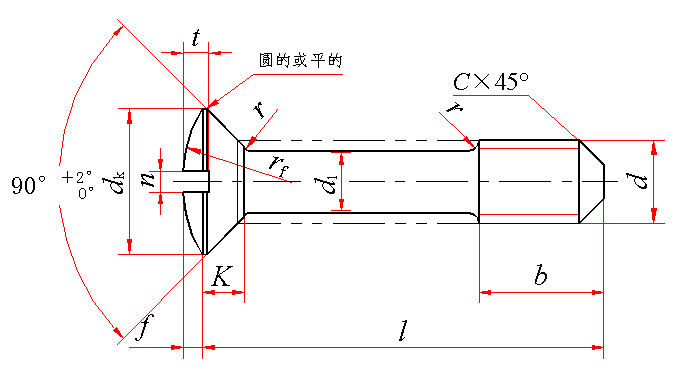 标记示例: 螺纹规格d=M5、公称长度l=20mm、性能等级为4.8级、不经表面处理的开槽半沉头不脱出螺钉的标记: 螺钉 GB 949 M5×20 |