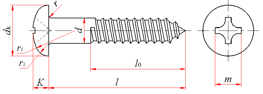 标记示例: 公称直径10mm、长度100mm、材料为Q215、不经表面处理的十字槽圆头木螺钉的标记: 木螺钉 GB 950 10×100 |