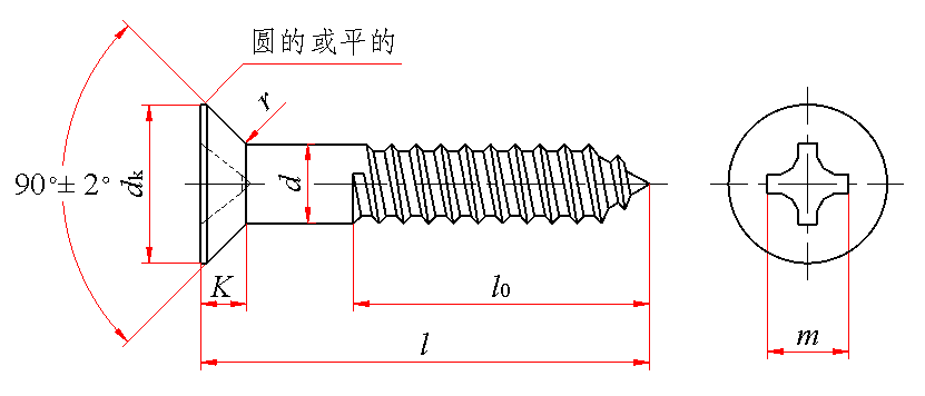 标记示例: 公称直径10mm、长度100mm、材料为Q215、不经表面处理的十字槽沉头木螺钉的标记: 木螺钉 GB 951 10×100 |