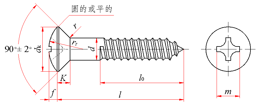 标记示例: 公称直径10mm、长度100mm、材料为Q215、不经表面处理的十字槽半沉头木螺钉的标记: 木螺钉 GB 952 10×100 |