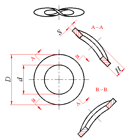 标记示例: 规格6mm、材料为65Mn、表面氧化的波形弹性垫圈的标记: 垫圈 GB 955 6 |