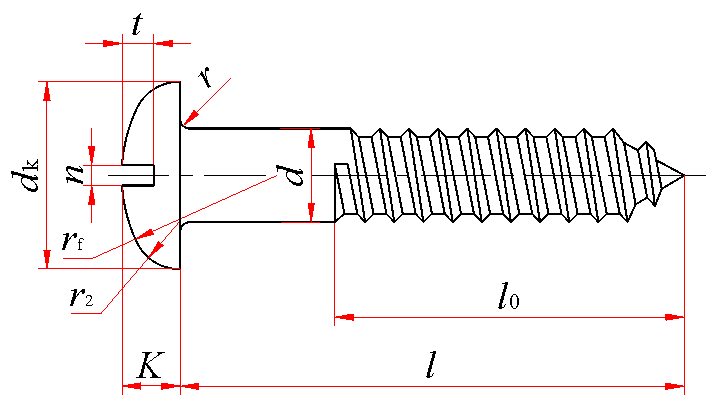 标记示例: 公称直径10mm、长度100mm、材料为Q215、不经表面处理的开槽圆头木螺钉的标记: 木螺钉 GB 99 10×100 |