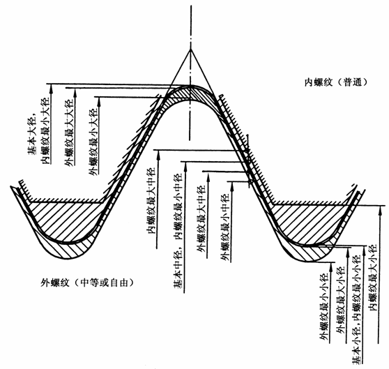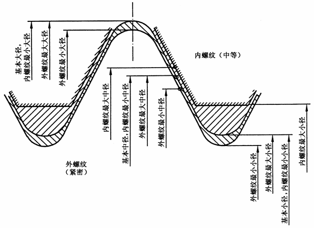 惠氏中等内螺纹与紧密外螺纹配合的公差带位置 |