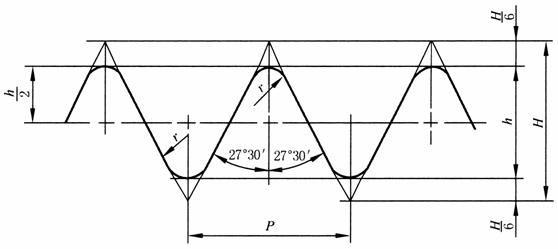 图中:H=0.960 491 P;h=0.640 327 P;r=0.137 329 P;P=25.4/n。