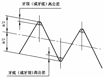 美制一般密封管螺纹的牙顶高和牙底高公差带位置 |