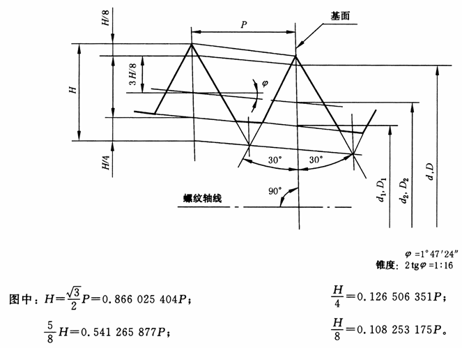 一般密封米制圆锥螺纹的牙型