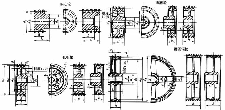 d1=(1.8~2)d,L=(1.5~2)d,d2=da-2(ha+hf+δ),h2=0.8h1,a=0.4h1,a2=0.8a1 |