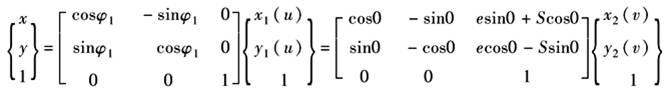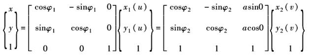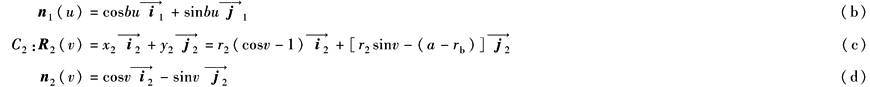 式中 x10、y10、x20、y20为曲线C1、C2经坐标变换到固定坐标系后的x、y分量,见式(e)、(f)。将
