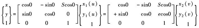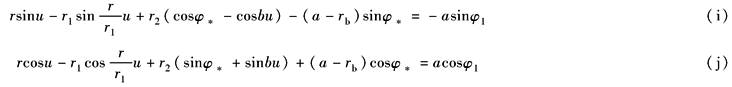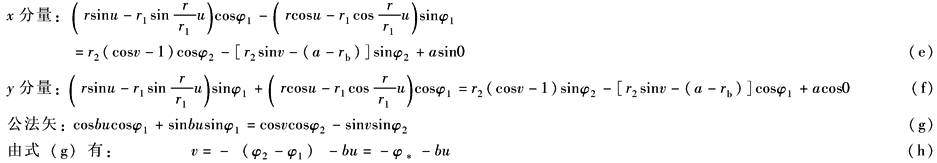 式(h)是两齿廓上的点接触时应满足的条件,将式(h)代入式(e)、(f)后并对其施行坐标旋转后,可得: