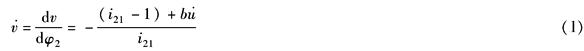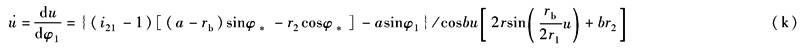 将式(h)对φ1求导可求变量参数υ对转角φ2的变化率为:
