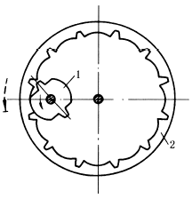 图2 内啮合式不完全齿轮机构 1—主动轮;2—从动轮 |