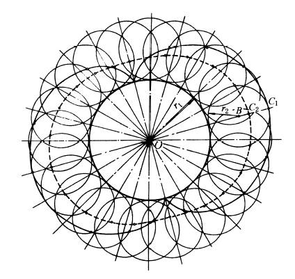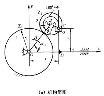 式中 f—— 主动转臂H的转角; K—— 齿数比,K=z1/z2。 ②行星齿轮2上C点的轨迹方程式。